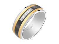 La bague est en acier inoxydable et décorée de zircones cubiques.